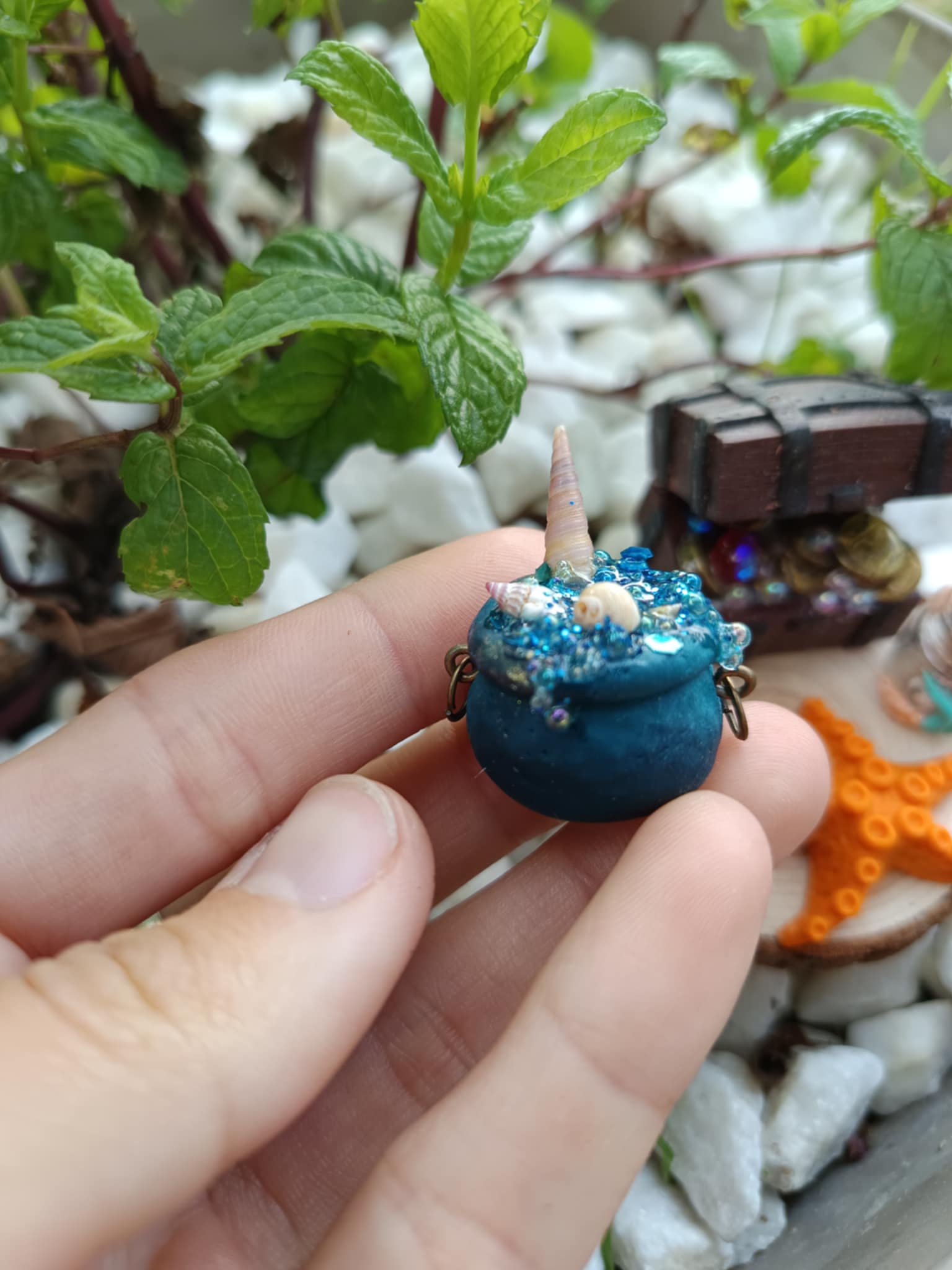 Dans les profondeurs oubliées, un chaudron ancien repose aux côtés d’un coffre aux trésors entrouvert, gardien des secrets de la mer. Une étoile de mer s’est posée là, comme un sceau du silence, tandis qu’une fiole scellée semble contenir un fragment d’océan.