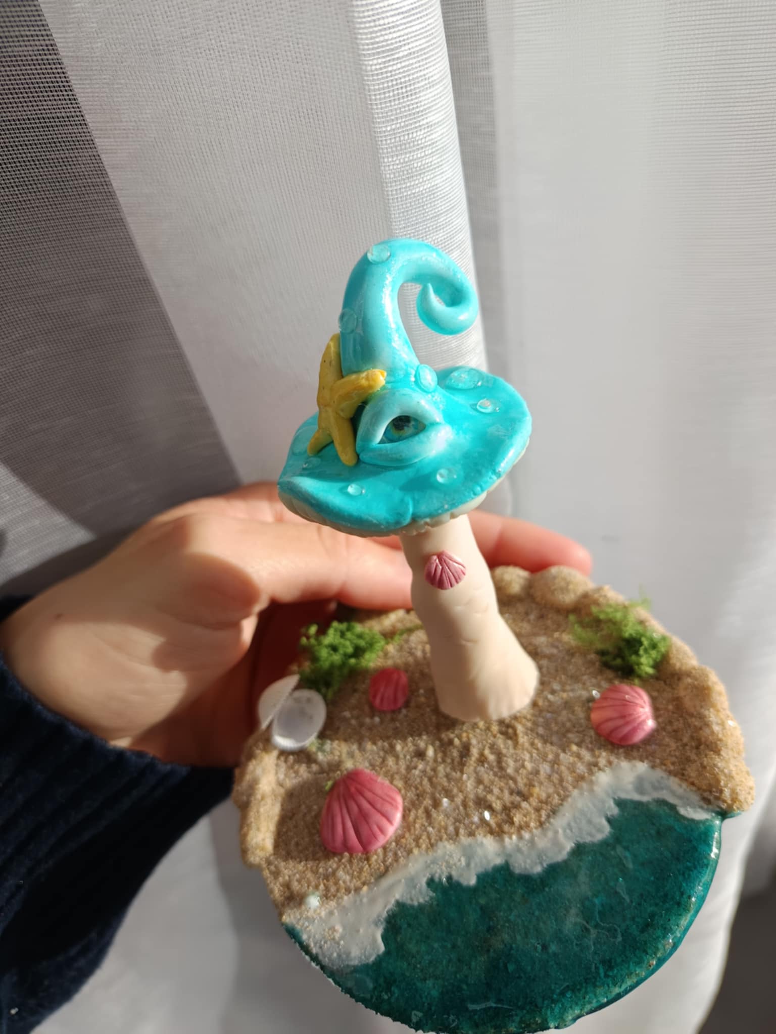 Il y a peu, j’ai eu le plaisir d’animer un atelier unique, où les enfants ont pu explorer, à travers le dessin, la naissance des gardiens. Chacun a laissé parler son imagination, ses rêves et sa magie intérieure. 🌟 Un petit concours a été organisé, mais il ne s’agissait pas de récompenser des talents de dessinateur. Non, l’enjeu était bien plus subtil : célébrer l’âme des gardiens, cette étincelle invisible qui fait briller leurs cœurs. Le choix a été difficile tant chaque création avait sa propre lumière… Mais un petit gardien s’est distingué. Il possédait ce petit quelque chose en plus, une étincelle de magie qui a su réchauffer mon cœur et illuminer mon esprit. ✨ Pour honorer cette jeune gagnante, j’ai pris soin de donner vie à son gardien en pâte polymère, fidèle à son dessin et à son imagination. Désormais, ce petit compagnon pourra veiller sur elle, l’accompagner chaque jour et devenir son confident, porteur de protection et de rêves merveilleux. 🌿💛 Chaque détail, chaque couleur, chaque trait a été façonné avec soin, pour que ce gardien reflète toute la tendresse, la fantaisie et la magie que cette petite créatrice avait mises dans son dessin.